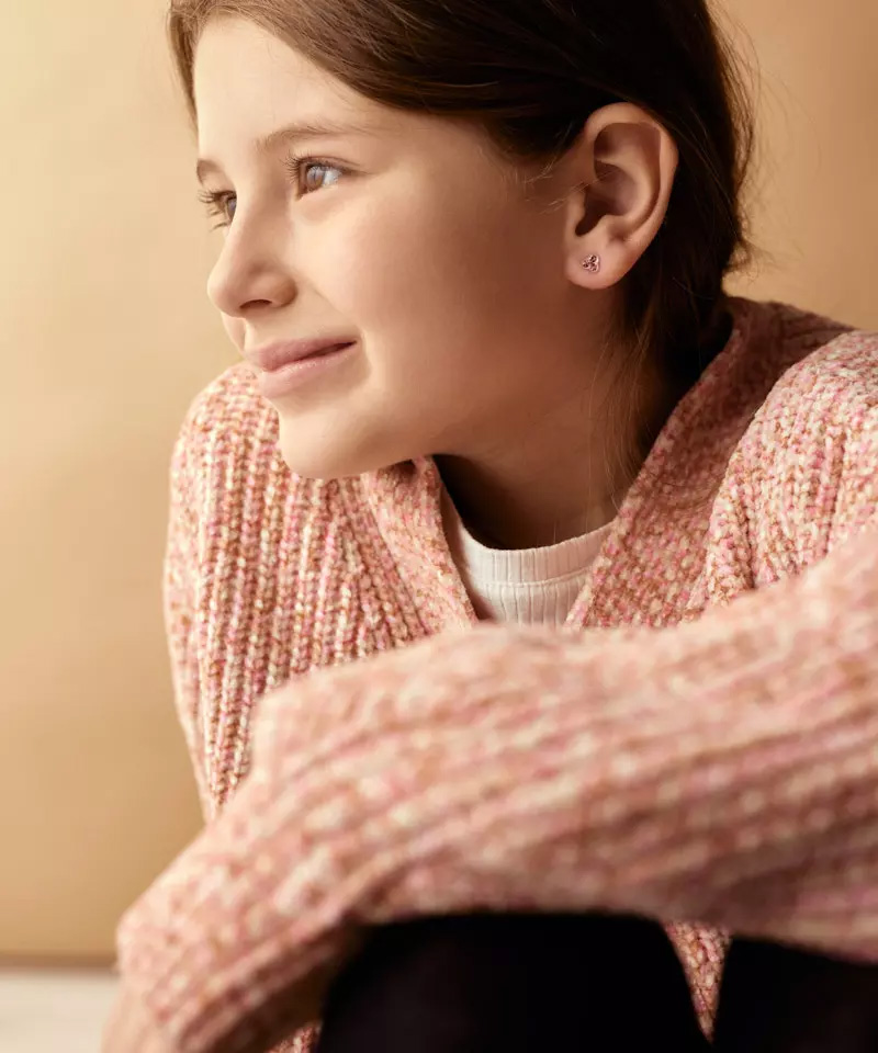 Náušnice vyvinuté ve spolupráci s kožními specialisty, z čistého lékařského plastu s krystaly.