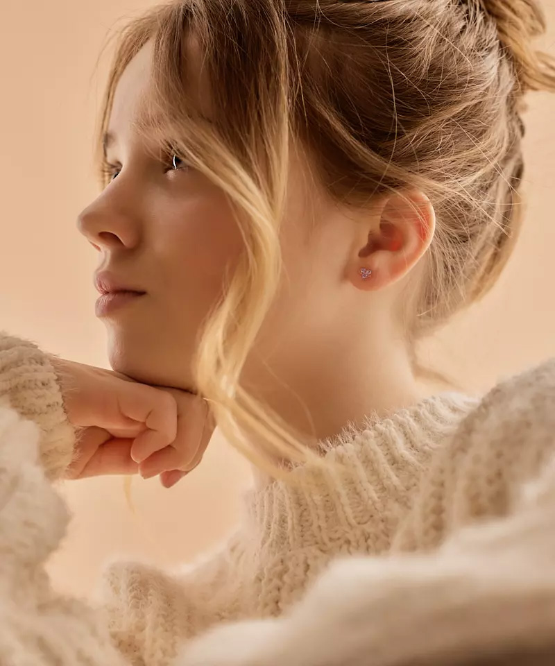 Náušnice vyvinuté ve spolupráci s kožními specialisty, z čistého lékařského plastu s krystaly.