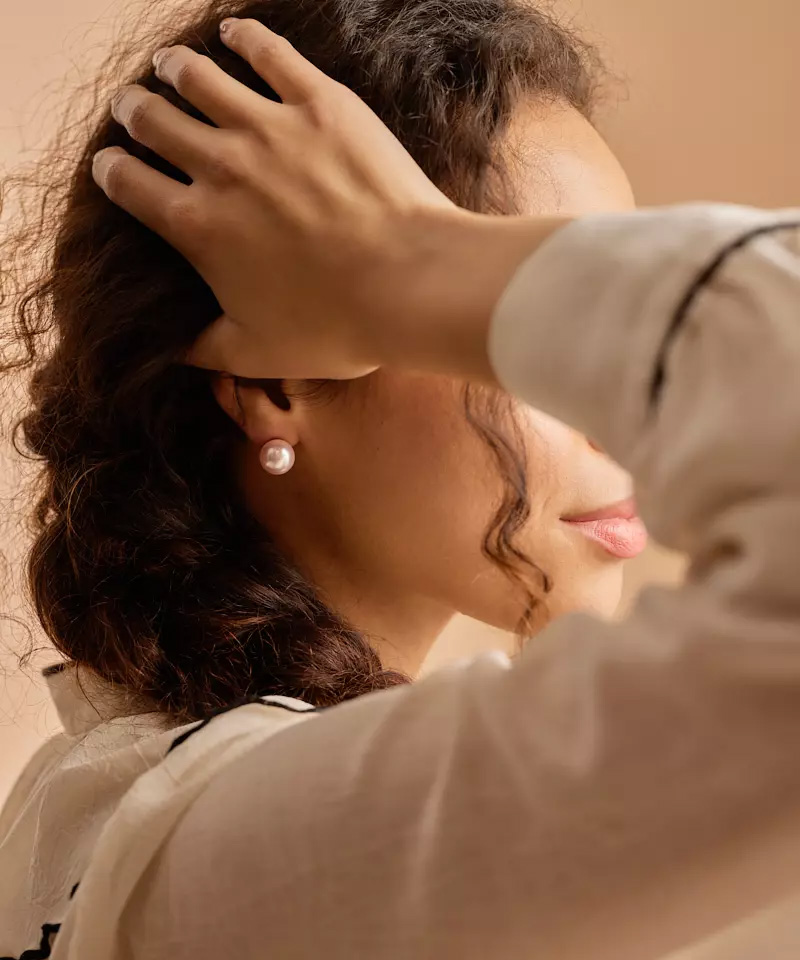 Náušnice vyvinuté ve spolupráci s kožními specialisty, z čistého lékařského titanu s perlami.